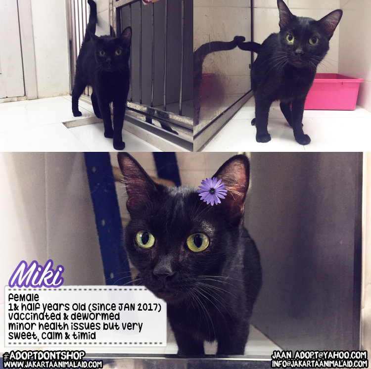 Miki is hard to photograph but has a beautifuly warm personality & is very kind. She completely content just hanging around people & exploring here & there. She is kind of timid & wouldn’t bother anyone or anything. Miki is completely healthy but needs an experienced adopter as she has some minor health issues with both her digestive & nervous system meaning, once in a while she can experience a seizure. She is also on a special diet for her digestive tract. Miki gets a long well with other cats & would do fine in a house hold of cat lovers where thy can keep an eye on her. Any experienced owner would be able to care for her very easily as other than her health issues, she is very low maintenance. She just needs love!