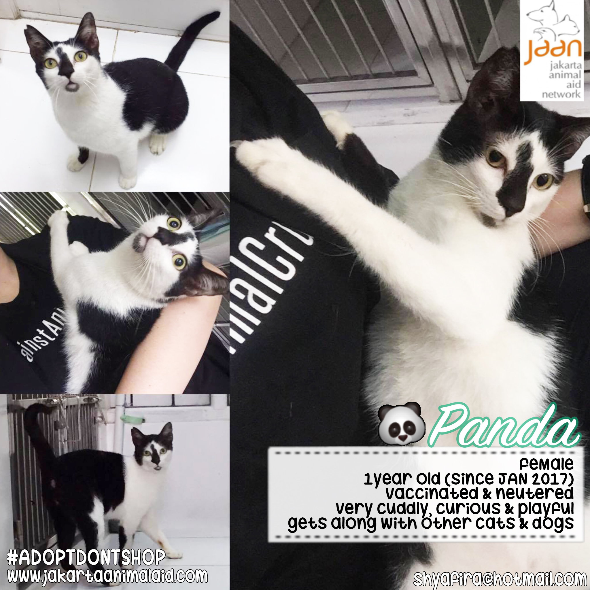 Panda is very curious & likes attention. She will happily just sit in your lap & will follow you around. She is extremely cuddly & gets a long GREAT with anyone. Kids, cats, dogs etc. Panda is perfect for a household that is looking for another additon to their family!
