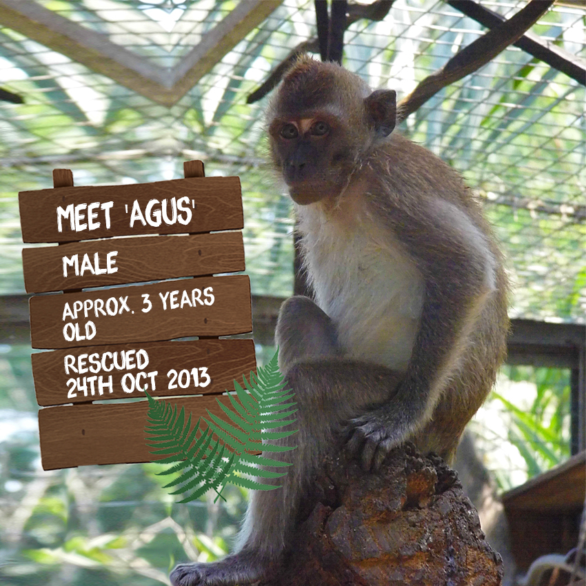 Agus arrived with bad ulcers and tooth infections as his teeth were ‘clipped’ by previous handlers (A standard practice to ensure the monkey isn’t able to bite them). After his dental surgery he is now pain free and is just super hyper, he can’t sit still! He is a sweet charactered boy that doesn’t like to get involved in conflict. His biggest hobby is to swim and play in water!