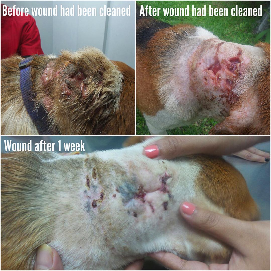 Update untuk Travis: Ketika Travis kami selamatkan minggu lalu terdapat luka dalam yang membusuk dan penuh belatung. Sekarang hanya dalam seminggu lukanya sudah kering dan menutup! Travis keadaannya makin baik, dan sangat senang. Travis akan tinggal bersama kita sekarang sampai dia menemukan keluarga selamanya. Terimakasih Helen untuk perawatannya selama seminggu terakhir. (dia naik 2kg) dan terimakasih Drh. Vita untuk perawatan medis yang baik!