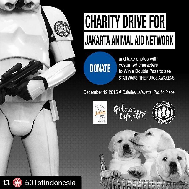 we’ll see you there…. #badguysdoinggood #starwars #501stindonesia #501stlegion #galarieslafayettejkt #pacificplacejakarta #fun #jakartaanimalaidnetwork #JAAN #charityevent #jakarta