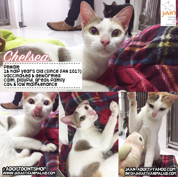 Chelsea does have a slight deformation on her from paw, most probably due to an accident before being rescued. She is extremely calm & relaxed. She loves to play & will entertain herself, once done playing she will lie/sit down, completely relaxed, & not bother anyone. Perfect for a busy family as she doesn’t need much attention but loves affection & playing. She also gets along with any other cat! She isn’t disturbed by much & is just very, very content. Chelsea is fully healthy & is up to date on all vaccinations. She will be neutered before being adopted.